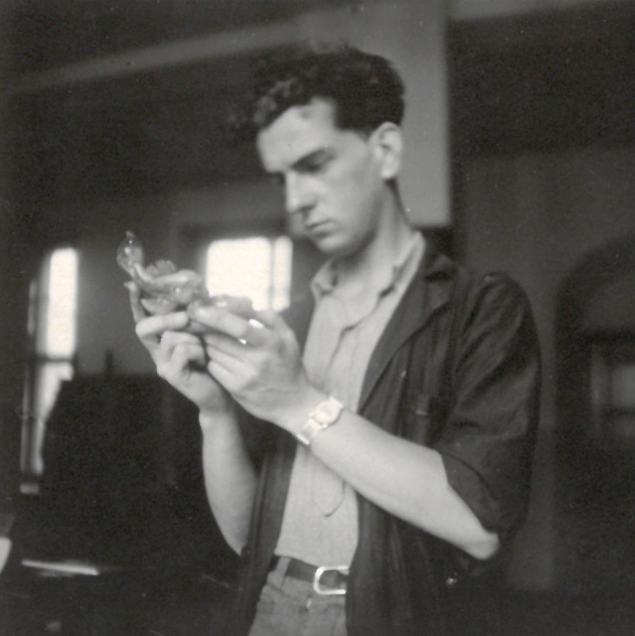 Již v roce 1944 během školní praxe ve sklárnách v Krásnu vytvořil několik figurálních plastik z křišťálového skla – jako první výtvarník přímo u sklářské pece.